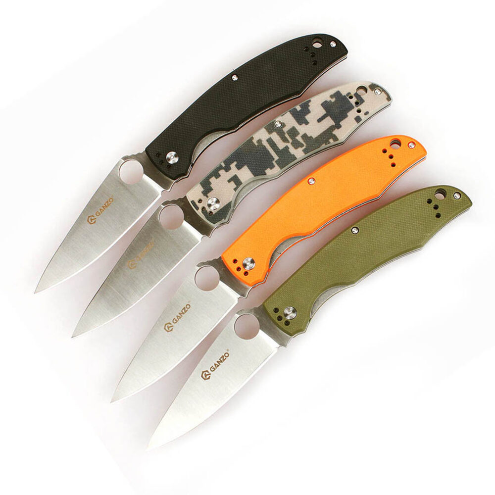 Складной нож Ganzo G732 с первого взгляда привлекает внимание дизайном. У него широкий клинок необычной формы с отверстием круглой формы, которое выполняет роль шпенька для открывания. Рукоятка подогнана под форму руки, а ее цвет покупатель выбирает из четырех возможных вариантов. Но внимания заслуживает не только дизайн ножа, но и материалы, из которых он изготовлен.